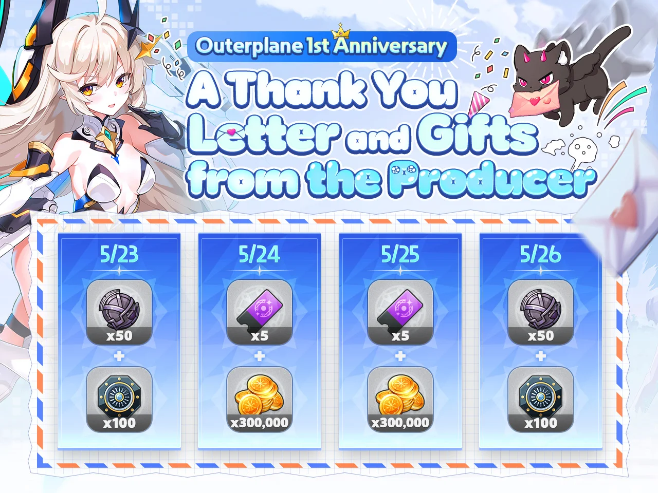This is Moonsoo Hyun, the producer of OUTERPLANE.OUTERPLANE, launched globally on May 23, 2023, is already celebrating its first anniversary.On behalf of the development team at OUTERPLANE, I would like to extend my deepest gratitude to all the Masters who have loved and enjoyed OUTERPLANE over the past year.Time has flown by so quickly that it feels like just yesterday was May 23 of last year. Yet here we are, a year later.The excitement and nervousness of meeting Masters from around the world, the thrill of our initial launch amidst many worries, the disappointment I felt when our imperfections and mistakes let you down, and the satisfaction that came from resolving various issues through the feedback of our dedicated Masters—all of these experiences have been deeply impactful.The many joyful and challenging memories bring the past year back to me as I express my gratitude to you today.Being able to connect with so many Masters through OUTERPLANE has been a tremendous blessing for us.For this, we are truly grateful. Ultimately, it is your warm encouragement and thoughtful advice that have helped us create a better OUTERPLANE today.While there are still many areas within the game that need improvement, we will always listen to your feedback. Our team is committed to doing its best and continually improving so that you can enjoy OUTERPLANE for many years to come.