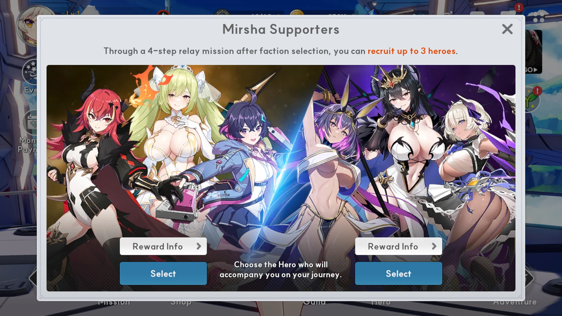▶ [Mirsha Supporters] Event Details: The [Mirsha Supporters] event for new Masters will begin in a relay format after the current 7-day Check-In/Mission event ends. In this event, you can choose either the Light or Dark element and obtain carefully selected heroes aligned with your choice.