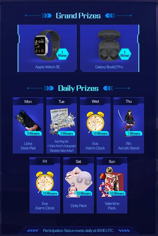 Participating in the mini-game will automatically enter you into the raffle for a chance to win exciting prizes such as an Apple Watch, Galaxy Buds, and unique official merchandise exclusive to OUTERPLANE!