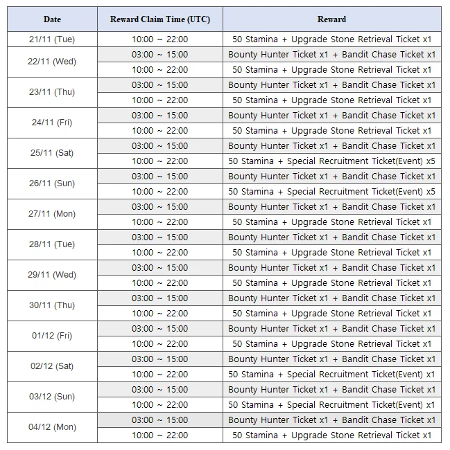 - Event rewards will be sent to your mailbox. - Event details are subject to change.Thank you.