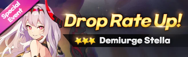 In this Drop Rate Up event, meet the hero, Demiurge Stella & Demiurge AsteiPlayers will have a higher chance of recruiting both Heroes!◈ Drop Rate Up Details
