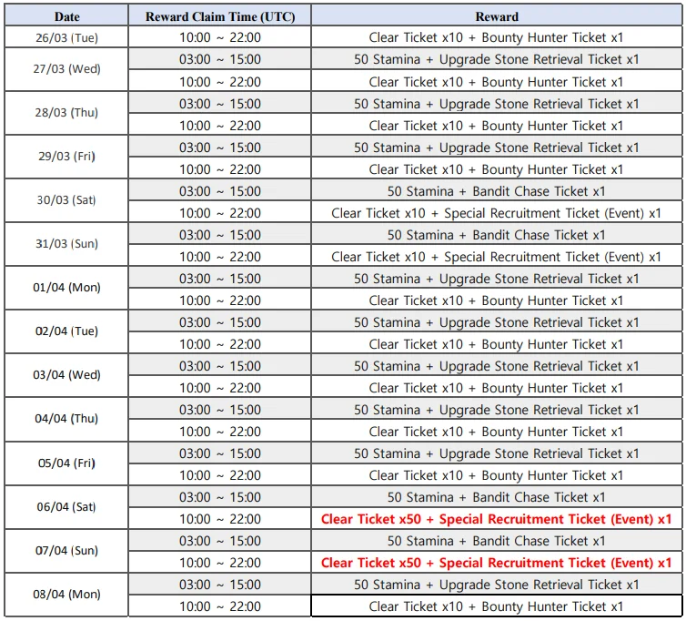 - Event rewards will be sent to your mailbox. - Event details are subject to change. Thank you.