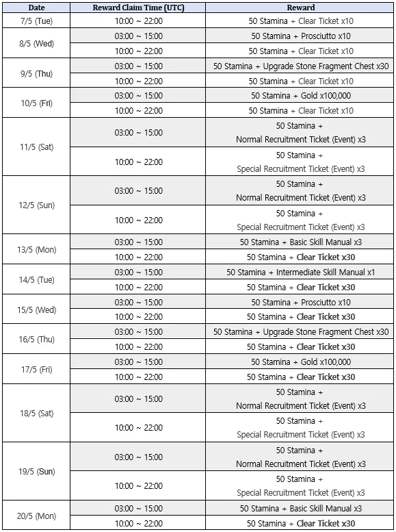 - Event rewards can be claimed once per account and can only be claimed by logging in during the stated period.