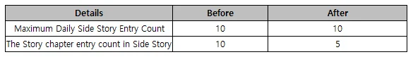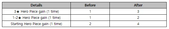 - The number of entries for Side Story stages where Hero pieces are droppable will be adjusted and the number of Hero Pieces players receive will be increased.