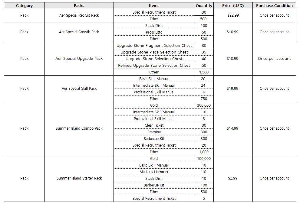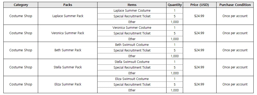 - Event Shop Schedule: 7/4 after the maintenance ~ 8/1 before the maintenance