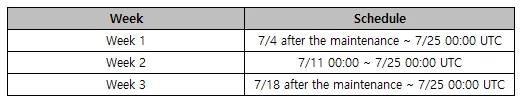 - Event Schedule: 7/4 after the maintenance ~ 7/25 before the maintenance