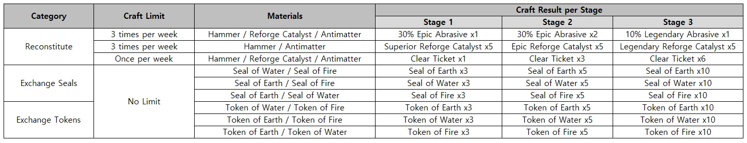 Ā Ā : Consumables crafting is separated into actual consumables crafting and material reconstitution.