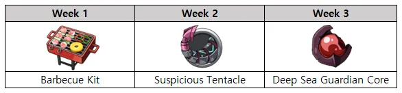 - You can use Barbecue Kit, Suspicious Tentacle, and Deep Sea Guardian Core, which can be obtained by playing through Summer Island to acquire various items.