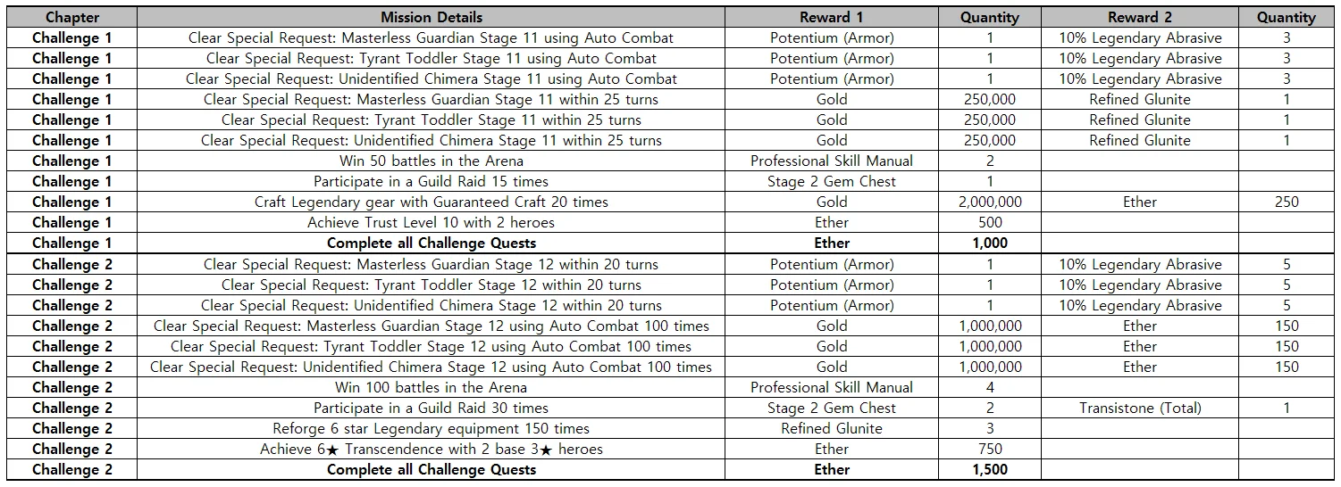 - Challenge Missions are designed to be more challenging compared to the Guide Quest, and as a result, the rewards for completing them are also set at a higher level.
