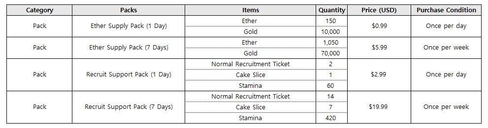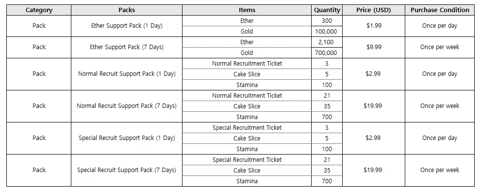 - You will be able to acquire a large amount of dungeon clear rewards and mission rewards including Normal/Special Recruitment Tickets and Ether.