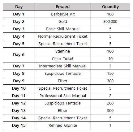 Ā Ā : Day 11 reward of Professional Skill Manual x 5 -> 2