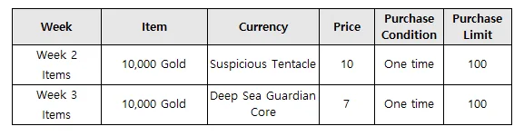 - Gold Items will be added to the Week 2 and 3 Shop.