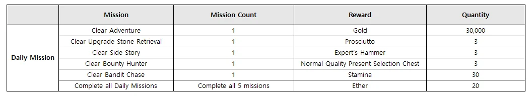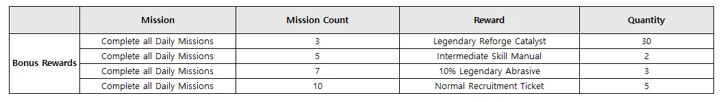 - Gain bonus rewards after completing a cumulative total of 3/5/7/10 daily missions.
