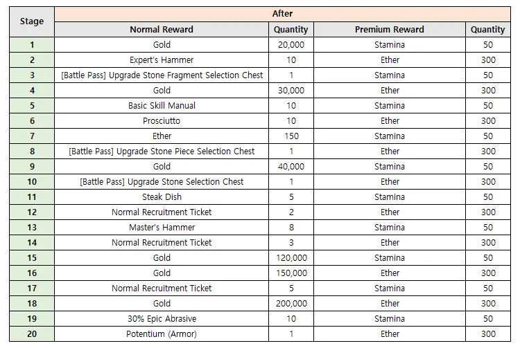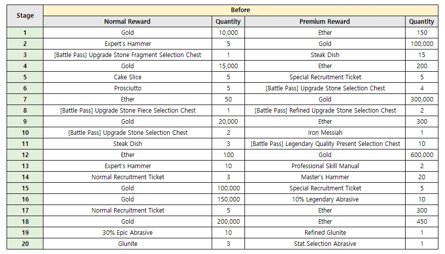 Normal/Premium Battle Pass rewards will be changed.