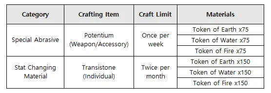 - Players can use the acquired crafting materials to craft Potentium (Weapon/Accessory) and Transistone (Individual) in Craft Consumable.