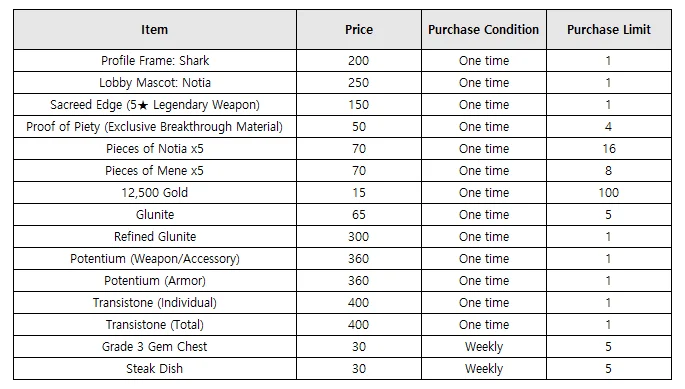 - You will be able to purchase the following items by spending the event currency you have acquired.