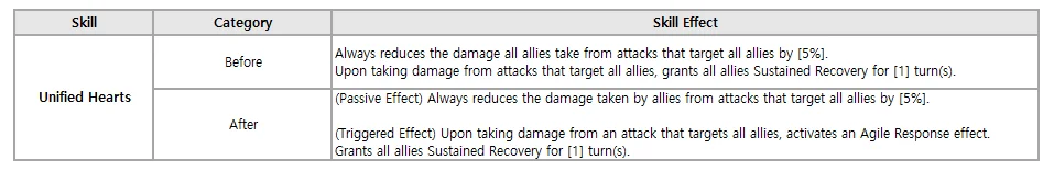 - Adjustments will be made to the description for the Hero Lyla's skill, "Unified Hearts". Adjustments will be made to the skill to be triggered by "Agile Response".