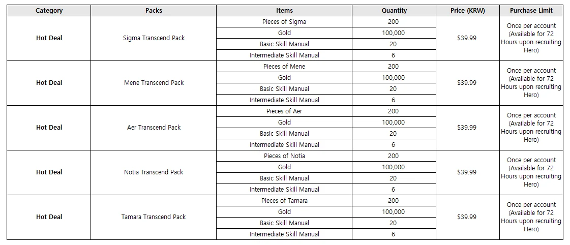 - Five new Transcend Packs will be added.