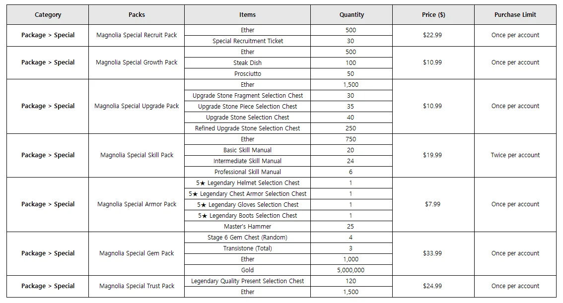 - Seven new Magnolia Special Packs will be added to the Special tab.