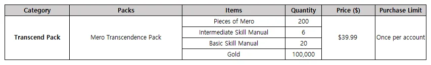 - A new Transcend Pack will be added.