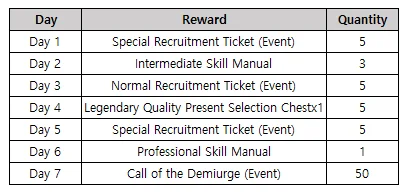 Ā Ā During the event period, players can obtain Recruitment Tickets (Event), Skill Manuals, and Call of the Demiurge (Event).