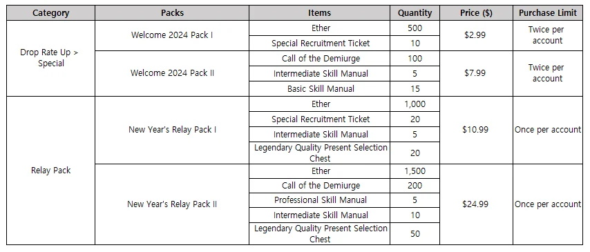 ć“ Holiday Gift I ć“ Holiday Gift II ć“ GOODBYE 2023 Assortment Pack I ć“ GOODBYE 2023 Assortment Pack II Ā 7. New Year's Check-in EventĀ - The special 7-day Check-in Event will begin to celebrate the New Year.