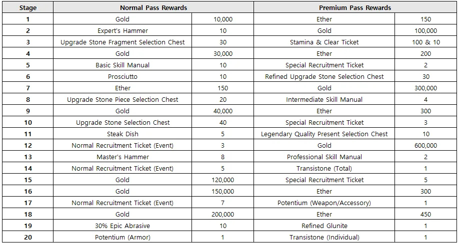 - The Normal Stage 1 reward will be changed to 10,000 Gold, while the Premium reward structures will remain unchanged.