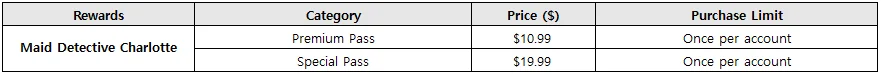 - Players will receive the costume “Maid Detective Charlotte” with the purchase of the Special Pass.