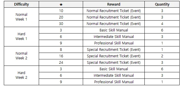 - You will be able to acquire a large amount of dungeon clear rewards and mission rewards including Normal/Special Recruitment Tickets and Ether.