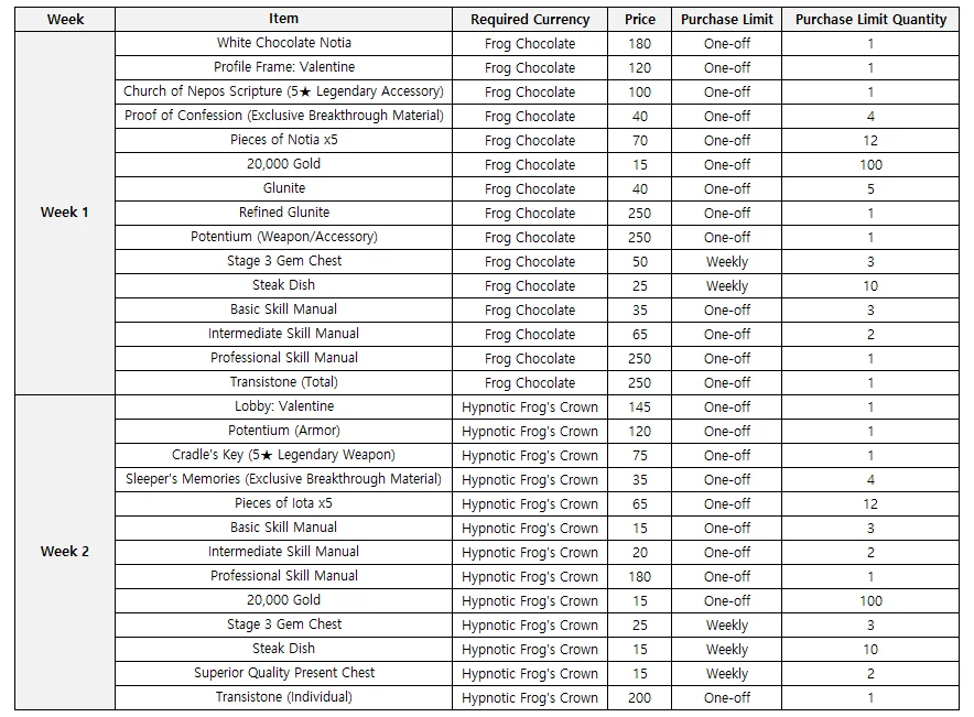 - You will be able to purchase the following items by spending event currency you have acquired.