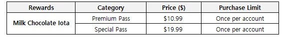 - Players will receive the Milk Chocolate Iota costume with the purchase of the special pass.