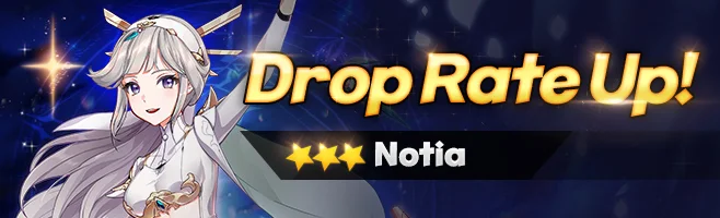 - Notia, a hero who attacks all enemies when landing a debuff on an enemy and inflicts the Silence debuff to Healers to provide a strategic advantage in combat, will be featured in the upcoming Drop Rate Up event.