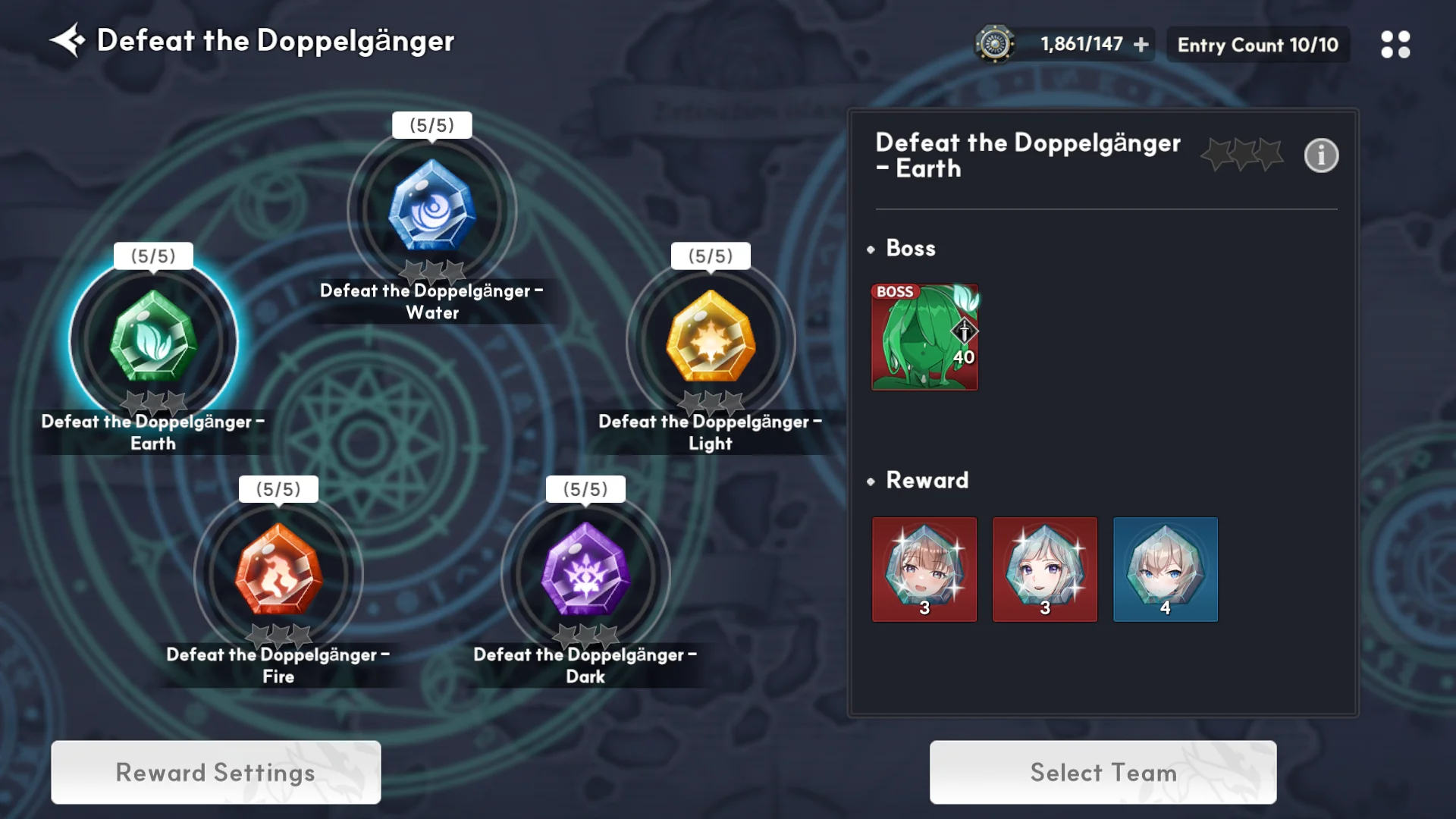 : The entry count for all dungeons will be reduced upon clearing any dungeon, regardless of its element. : When selecting two 3★ Heroes in Rewards Settings, the entry counts consumed will be doubled. : You can enter each element dungeon up to 5 times daily.