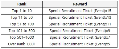 Ā Ā Ā Ā Ā ć“Ā You can obtain Special Recruitment Ticket (Event) based on your ranking bracket.