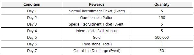 Ā - You will be able to acquire a large amount of dungeon clear rewards and mission rewards including Normal/Special Recruitment Tickets and Ether.