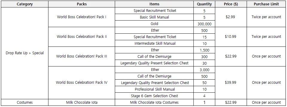 - The Guild Raid scheduled to take place following the update on 3/12 will be postponed. Instead, the first season of the World Boss will commence.
