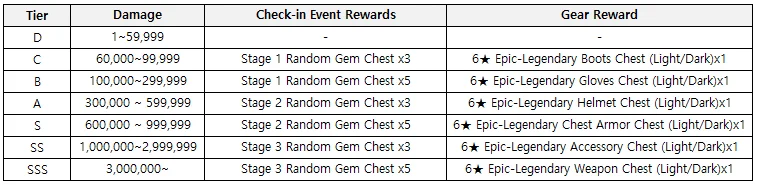 Ā Ā Ā Players can acquire rewards relative to the rank they've acquired based on the damage dealt. (Available once per day)