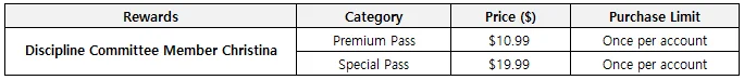 - A new Battle Pass will be added, featuring Christina's costume, Discipline Committee Member Christina, as a reward.