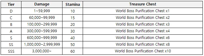 Ā Ā Ā Ā ć“Ā You cannot receive duplicate rewards for grades already obtained during the World Boss event period.