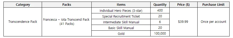 Ā ā» Please note that we will be retroactively applying these changes for players who have purchased Transcend Packs prior to this change, and sending them the difference via the in-game mail.
