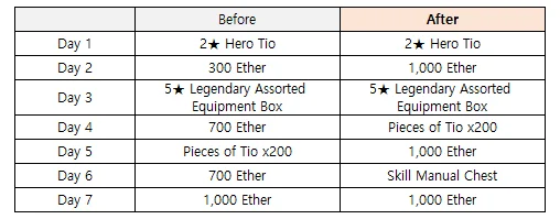 6. Reward changes for the Journey to Another World Event and the New Players Only! 3-Day Check-In Event