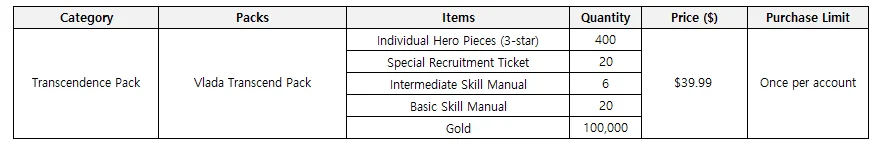 Ā Ā Ā Ā (Vlada's Transcend Pack already included Special Recruitment Tickets so only the amount will be increased.)