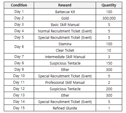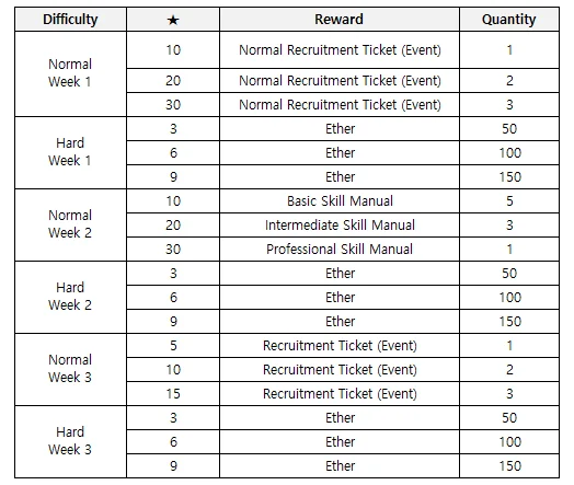 Ā - You will be able to acquire a large amount of dungeon clear rewards and mission rewards including Normal/Special Recruitment Tickets (Event) and Ether.