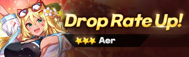 - Aer, a hero capable of dispelling buffs from enemies or dealing significant damage to enemies with buffs, will be joining us during the upcoming Drop Rate Up event.