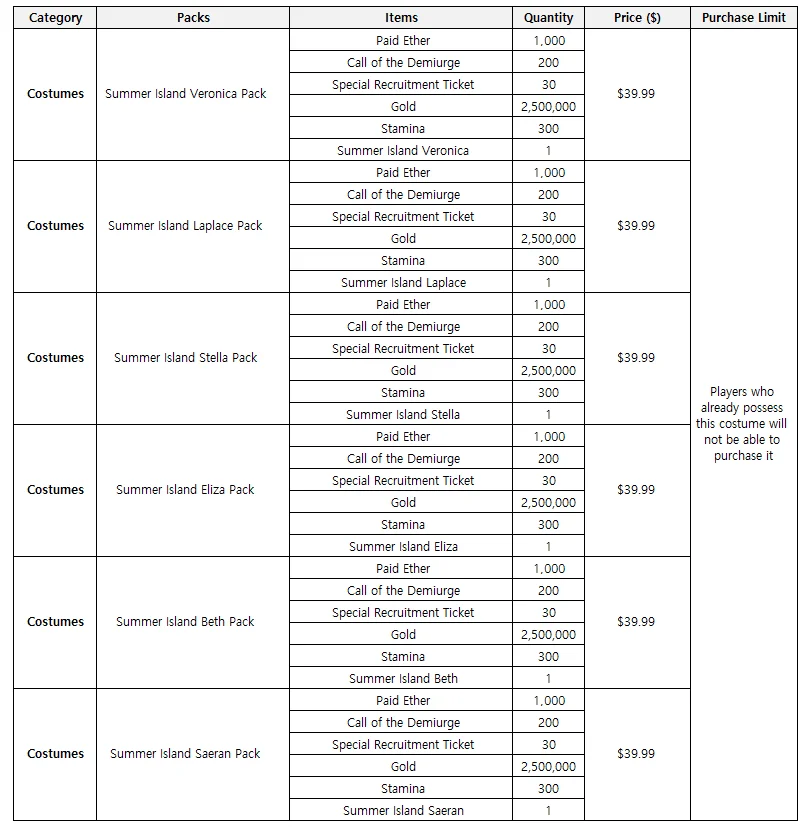 Ā ā» The purchase button for the Summer Island costume package will be disabled if you already own the costume.