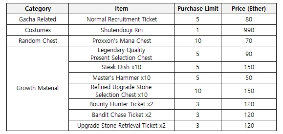 Ā - Event Shop Availability: 6/18 after the maintenance ~ 7/16 before the maintenance