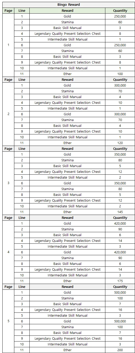 ć“ Upon completing a bingo, you will receive the corresponding rewards. Once you have collected all rewards on a bingo board, you will advance to the next bingo board.ć“ There are 5 bingo boards in total, and you will receive completion rewards for each board as you finishĀ them.