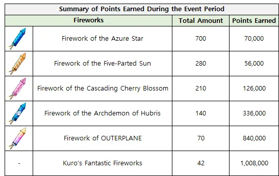 - Points are awarded based on the number of fireworks used, and you can earn rewards based on the points you accumulate.