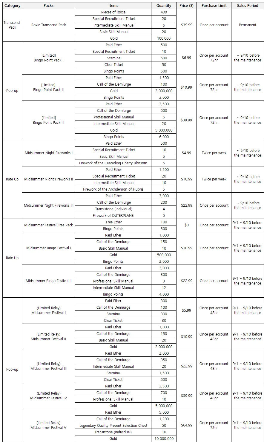 Ā Ā : The OUTERPLANE festibal tab in th event shop has been extended. Ā