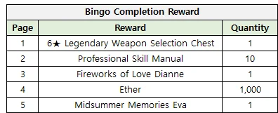 - Enjoy a bingo event where you can earn new costumes: Fireworks of Love Dianne, and Midsummer Memories Eva